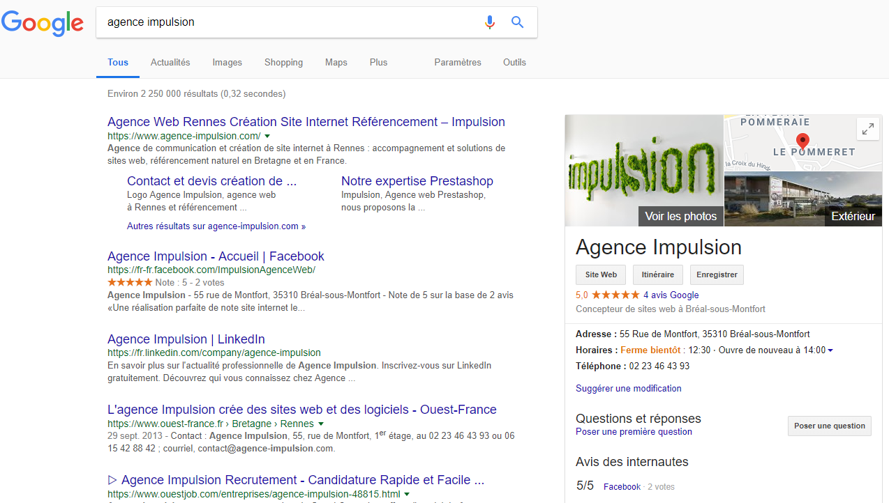 Lors de la recherche sur Google, votre entreprise peut aussi apparaître sur la droite avec un plan et les informations de contact.